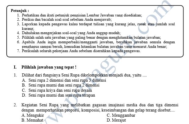 Soal uh/ph, uts/ perguruan tinggi swasta kelas 7 seni budaya kurikulum 2013 tahun 2018.